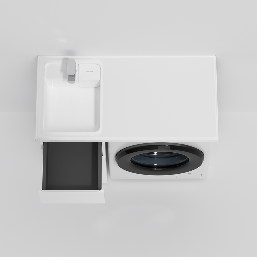 Глубокие удобные ящики позволяют организовать и хранить все необходимые средства под рукой. Внутреннее покрытие каждого ящика выполнено в современном цвете Anthracite и имеет противоскользящее покрытие. Накладная раковина из литьевого мрамора белоснежного цвета оснащена съемной мыльницей специальным бортиком для защиты от пролива воды за мебель и скрытым сливом.