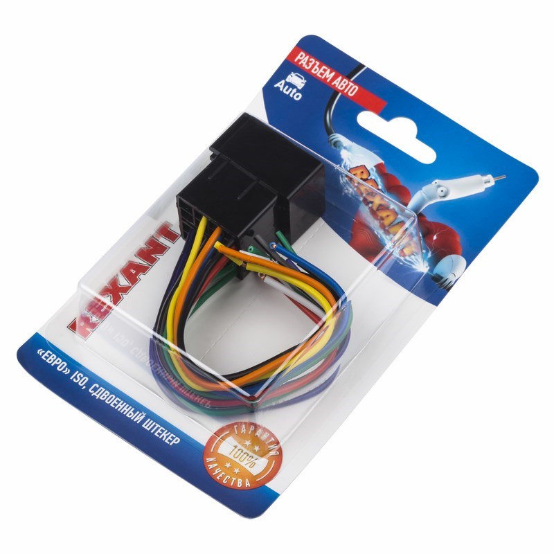 Разъемы для автомагнитол "Евро" ISO сдвоенный штекер АКУСТИКА+ПИТАНИЕ предназначены для подключения автомагнитолы к электропроводке автомобиля. Изделие представляет собой специальную колодку штекер стандартизированного формата "Евро" ISO с проводами и соединяется с разъемом гнездо для автомагнитол. Цветовая маркировка проводов также соответствует стандарту, поэтому позволяет быстро подключать большинство автомагнитол.