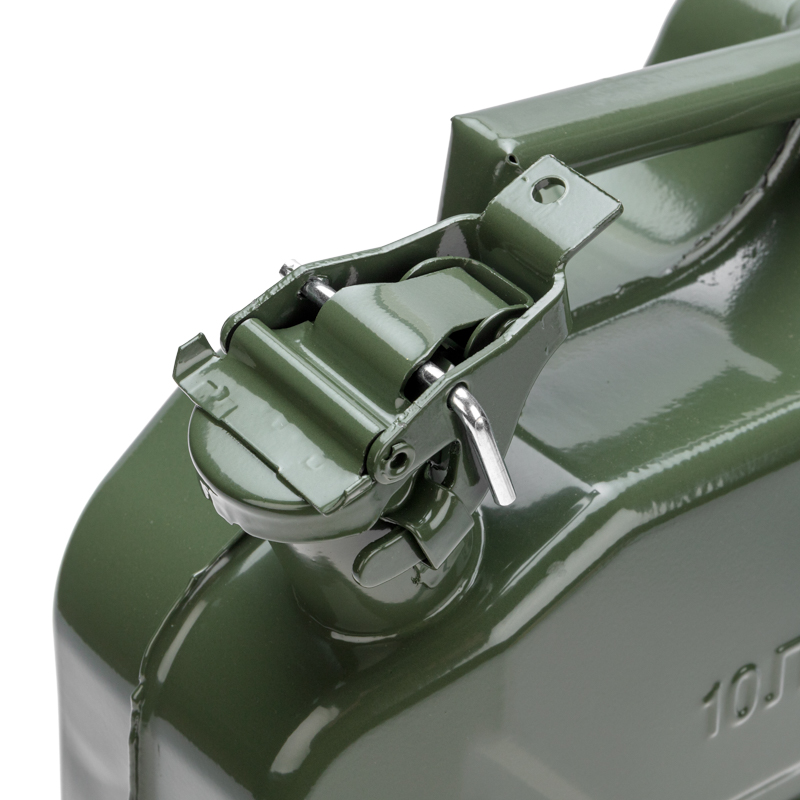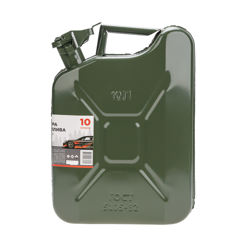 Канистра изготовлена из высококачественного металла, что обеспечивает долгий срок службы и устойчивость к механическим повреждениям.