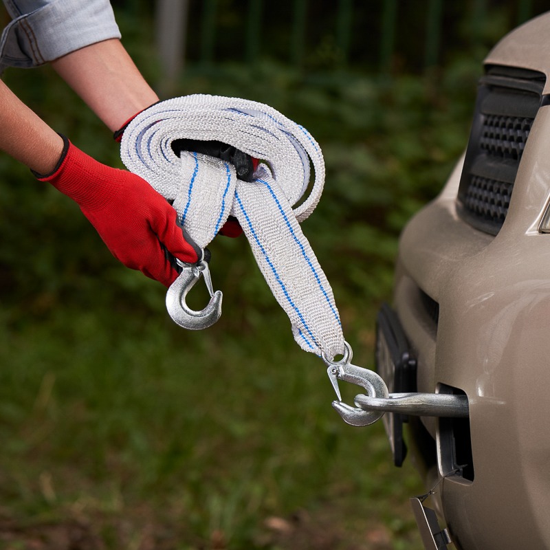 Буксировочный трос 10 тонн REXANT незаменим в случае поломки автомобиля.