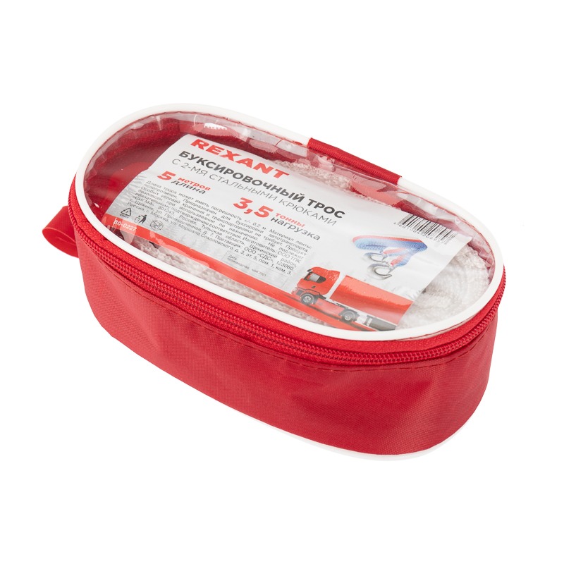 Трос буксировочный REXANT 3.5 т, 5 м, с двумя крюками, в чехле