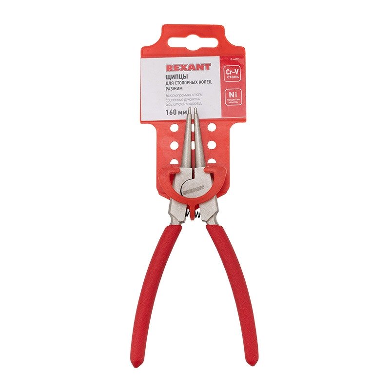 Щипцы для стопорных колец разжим 160мм, обливные рукоятки REXANT