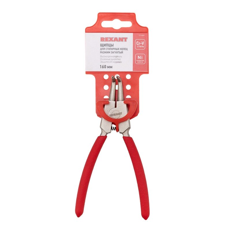 Щипцы с загнутым разжимом REXANT предназначены для снятия внутренних стопорных колец и труднодоступных элементов. <br> Изготовлены из хромованадиевого сплава, который отличается прочностью, жесткостью, устойчивостью к износу. В сравнении с другими типами инструментальной стали такой сплав менее подвержен деформациям и потере первоначальной формы во время прокаливания. <br> Инструмент имеет никелевое покрытие, которое защищает от образования ржавчины и продлевает их срок службы.<br> Специальная форма облегченных обливных рукояток обеспечивает дополнительный комфорт при работе.