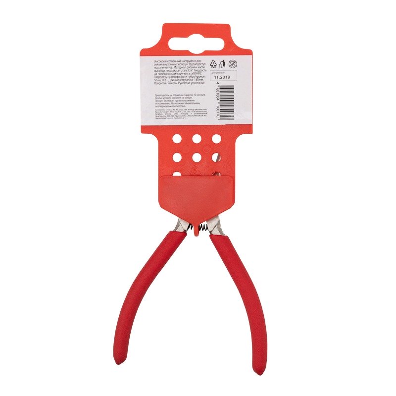 Щипцы с прямым разжимом REXANT предназначены для снятия внутренних стопорных колец и труднодоступных элементов. <br> Изготовлены из хромованадиевого сплава, который отличается прочностью, жесткостью, устойчивостью к износу. В сравнении с другими типами инструментальной стали такой сплав менее подвержен деформациям и потере первоначальной формы во время прокаливания. <br> Инструмент имеет никелевое покрытие, которое защищает от образования ржавчины и продлевает их срок службы.<br> Специальная форма облегченных обливных рукояток обеспечивает дополнительный комфорт при работе.
