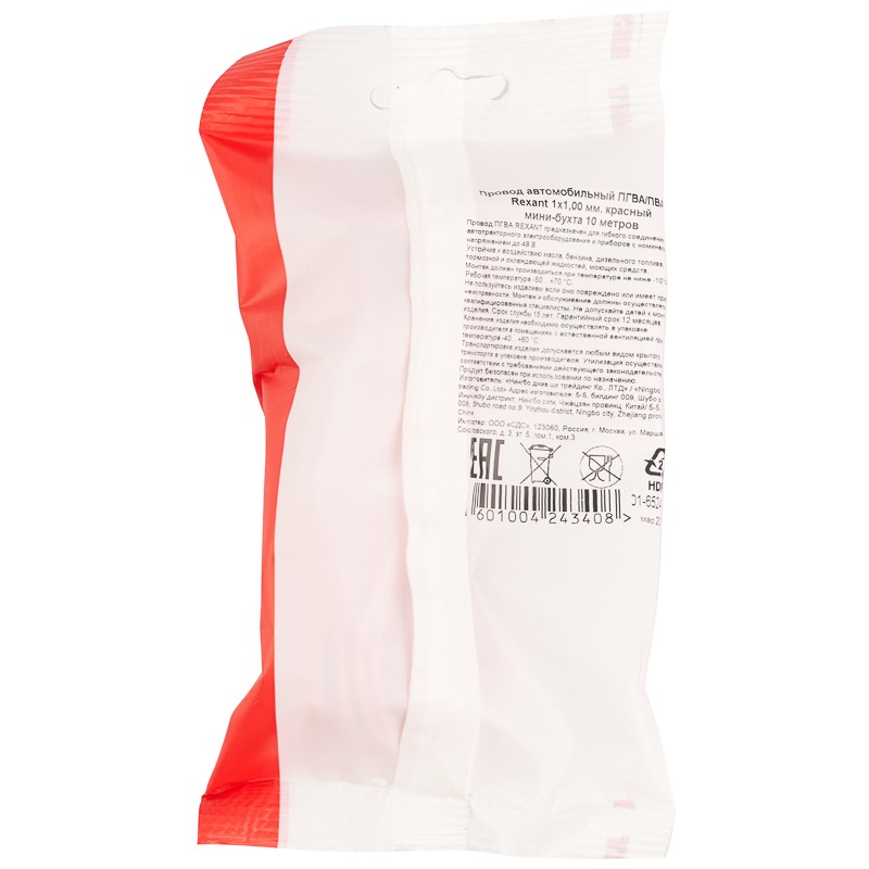 Провод автомобильный ПГВА/ПВАМ REXANT 1х1,00 мм красный, мини-бухта 10 метров