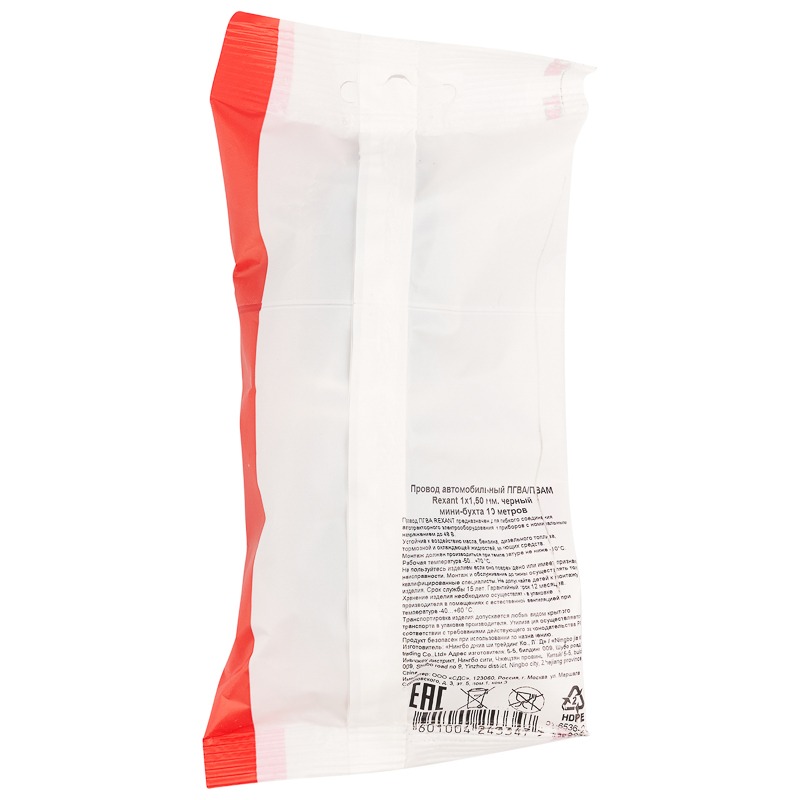 Провод автомобильный ПГВА/ПВАМ REXANT 1х1,50 мм черный, мини-бухта 10 метров