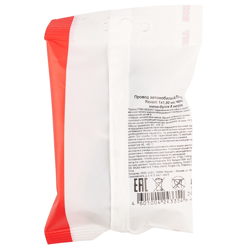 Провод автомобильный ПГВА/ПВАМ REXANT 1х1,50 мм черный, мини-бухта 5 метров