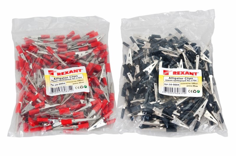 Зажим "крокодил" 5А 40мм в изоляторе REXANT представляет собой электромеханическое устройство, предназначенное для оперативного соединения или разъединения контакта проводов при выполнении измерительных работ или монтажа электрических и слаботочных сетей. Зажим получил свое название за схожесть с челюстями крокодила. Состоит он из двух фигурных деталей с «крокодильими» зубцами, скрепленных серединами специальным штифтом и способных поворачиваться на некоторый угол вокруг оси соединения. К одной из деталей монтируется контактный провод. Сжатие «челюстей» обеспечивается пружиной, вставленной с другой стороны штифта. Контактная часть изделия изготавливается из стали с никелированным покрытием и полностью закрыта изолятором. В целях безопасной эксплуатации зажима, изоляция, изготовленная из ПВХ, исключит случайное контактирование с другими токонесущими частями и предохранит от поражения электрическим током. Чаще всего зажимы применяются парами черного и красного цвета (50/50). Основные характеристики:<br> - общая длина зажима – 40 мм;<br> - максимально допустимая величина пропускаемой силы тока – 5 Ампер;<br> - цвет изолятора – красный/черный.<br> Конструкция изделия проста и надежна, что гарантирует его использование в течение длительного времени без потери функциональных свойств.<br> Цена за штуку. В упаковке 200шт (100 красных и 100 чёрных). Минимальная партия отгрузки 1 упаковка.
