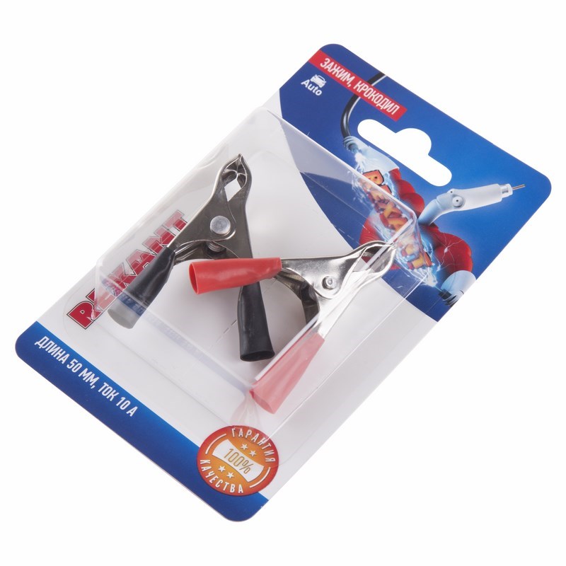 Зажим крокодил REXANT, длина 50 мм, ток 10A, 2 шт.