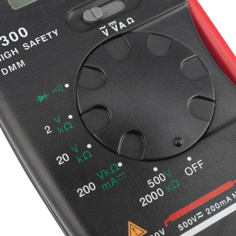 Мульти́метр — электроизмерительный прибор, который включает в себя определенный набор измеряемых параметров и функций. Прибор серии М300 представляет собой компактный, удобный измерительный прибор, который можно всегда держать под рукой, также рекомендуем ознакомиться с прибором М320(Арт.: 13-2009). С помощью данного прибора можно измерять постоянное и переменное напряжение, постоянный ток и сопротивление. А также, можно проводить тестирование диодов и прозвонку целостности цепи.