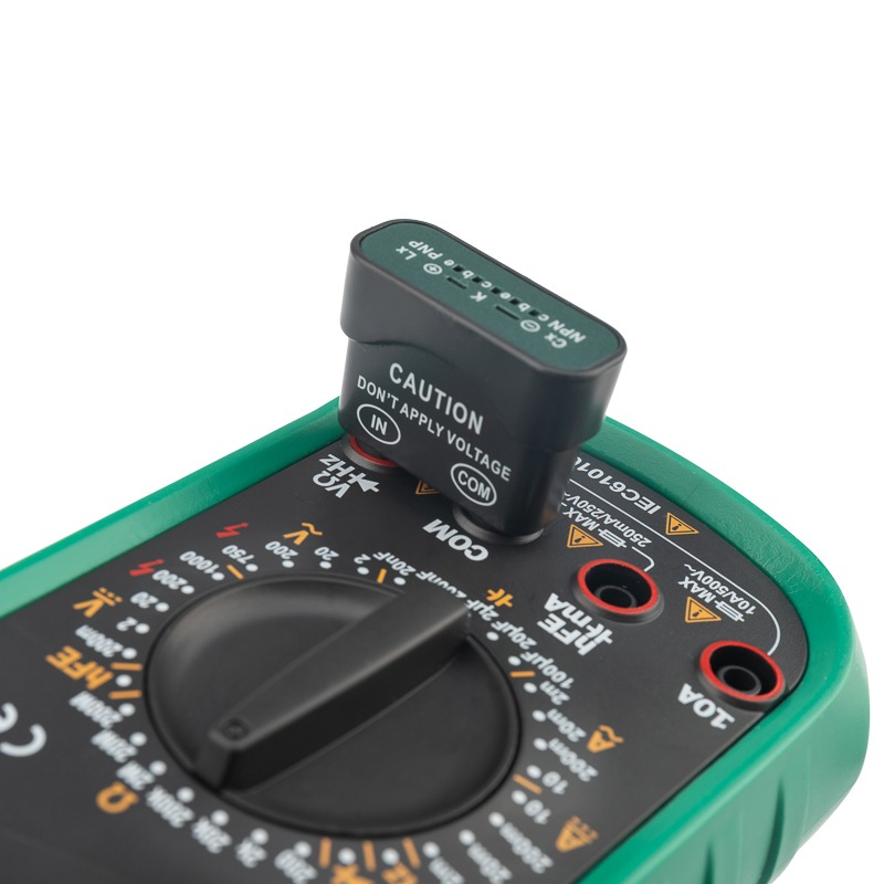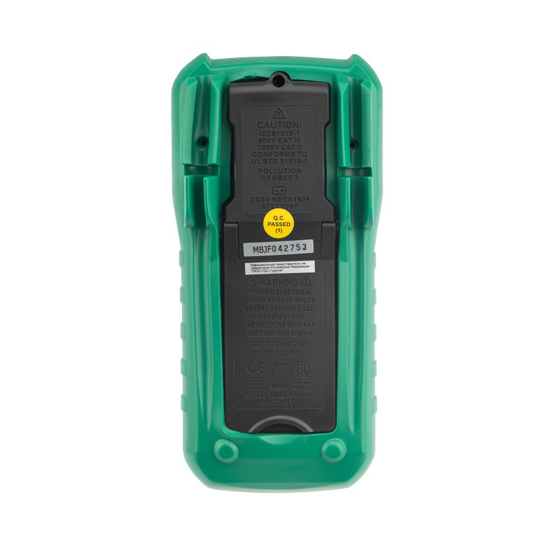 Мульти́метр — электроизмерительный прибор, который включает в себя несколько функций и набор измеряемых параметров. Прибор MY62N относится к обновленной серии N, что отразилось на внешнем и внутреннем дизайне, ряде параметров и улучшенной схемотехнике, добавлена функция памяти данных на экране. Прибор измеряет постоянное и переменное напряжение, а также постоянный и переменный ток, сопротивление, емкость в цепи и даже температуру. С помощью данного прибора можно проводить тестирование диодов, прозвонку целостности цепи и измерение коэффициента усиления транзисторов. Таким образом, один прибор сможем заменить сразу несколько устройств одновременно. <br> Прибор MY62N является полноразмерным универсальным мультиметром обновленного форм-фактора с широким функционалом, с большим ручным выбором диапазонов измерений , который можно использовать практически в любой сфере деятельности. Прибор имеет функцию удержания результата измерений DATA HOLD для тех случаев, когда измерения проводятся в труднодоступных местах и не всегда есть возможность взглянуть на экран. <br> Инженеры старались сделать прибор максимально удобным для использования. Выбор измеряемых величин и пределов измерений производится с помощью усиленного поворотного регулятора, благодаря которому исключается возможность случайного нажатия. <br> Прибор изготовлен из высококачественных материалов, калибровка и тестирование приборов произведены под контролем компании СДС.<br> <br> Характеристики:<br> Постоянное напряжение: 200 mВ/2 В/20 мВ/200 В (±0,5%+3), 1000 В (±0,8%+3)<br> Переменное напряжение: 200 мВ/2 В/20 В/200 В (±0,8%+3), 750 В (1,2%+3)<br> Постоянный ток: 2 мА/20 мА/200 мА(±1,5%+1), 10 A (±2,0%+5)<br> Переменный ток: 2 мА/20 мА/200 мА(±1,8%+5), 10 A (±3,0%+5)<br> Сопротивление: 200 Ом/2 КОм/20 КОм/200 Ком/2 МОм(±0,8%+3), 20 МОм (±1,0%+5), 200 МОм (±6,0%+10)<br> Емкость: 2 нФ/20 нФ/200 нФ/2 мкФ (±4%+3),100 мкФ (±6%+10)<br> Температура: –20~+1000 °C (±2,0%+2)<br> 4-разрядный дисплей <br> Ручной выбор предела измерений <br> Тестирование диодов<br> Прозвонка целостности цепи<br> Коэффициент усиления транзисторов(hFE): 0~1000<br> Режим удержания измерений DATA HOLD<br> Импеданс: <br> Размер: 145х73х45 мм<br> Тип батареи: 9 В «Крона»