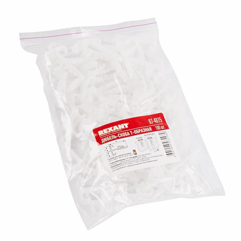 Дюбель-хомут нейлоновый Т-образный для двух плоских кабелей 2х12 мм, белый (КФ) (100 шт/уп) REXANT