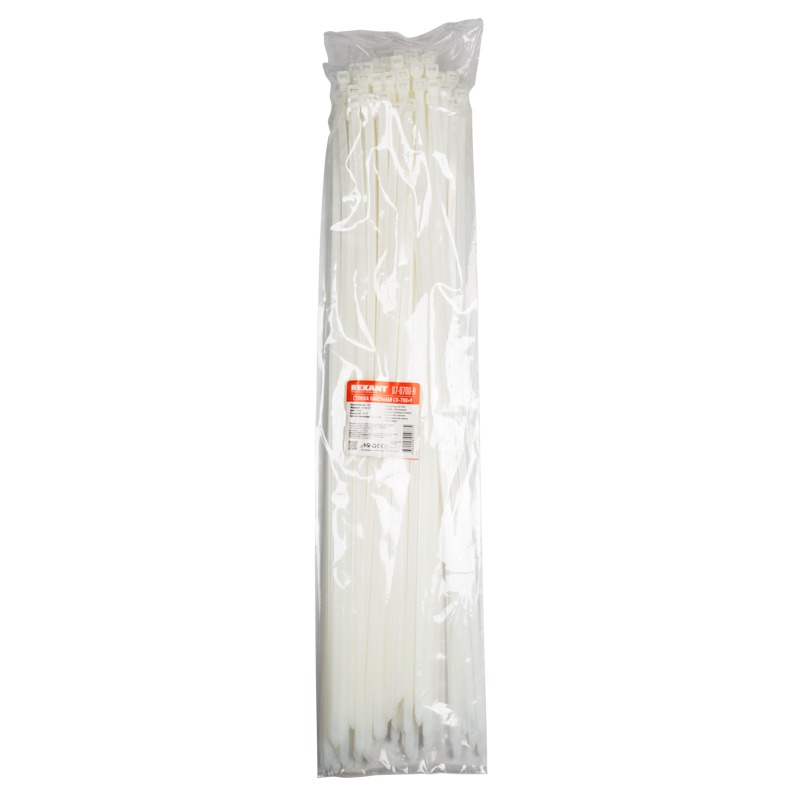 Хомут-стяжка кабельная нейлоновая 700x9,0мм, белая (100 шт/уп) REXANT
