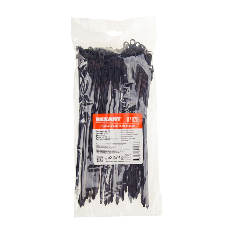 Хомут-стяжка нейлоновая под винт 200x4,3мм, черная (100 шт/уп) REXANT