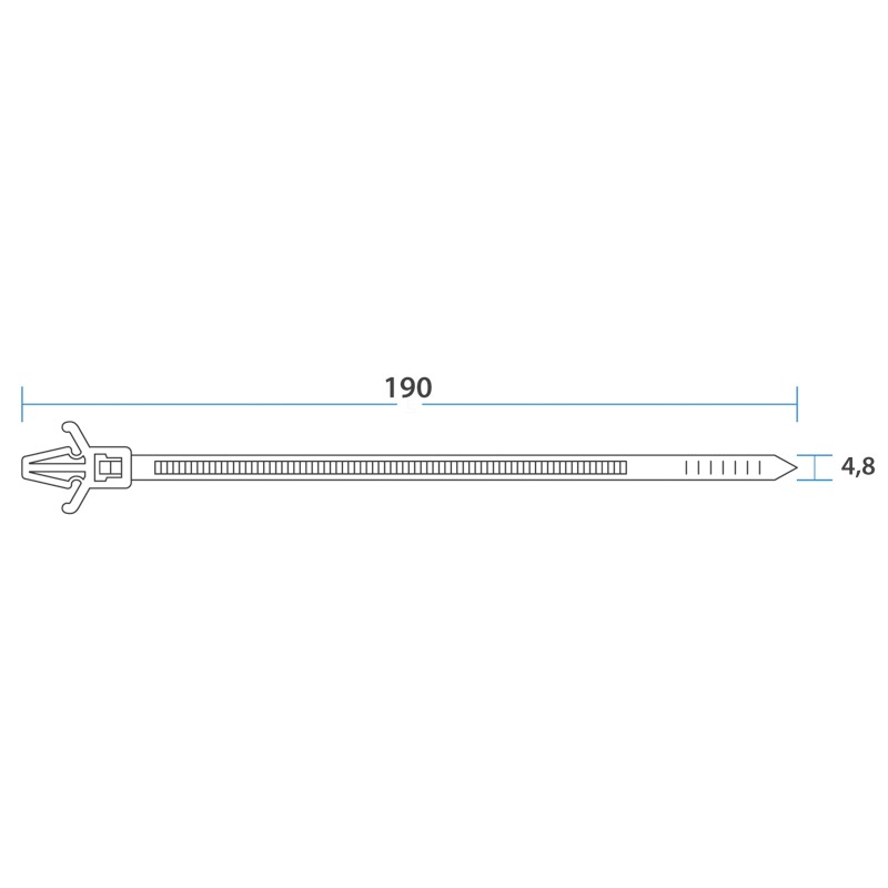Хомут-стяжка нейлоновая с крепежным пистоном REXANT 190x4,8 мм, ø 3,2 мм, белая (100 шт/уп) REXANT