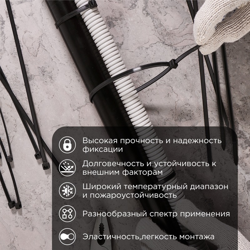 Хомут-стяжка нейлоновая с тройным замком 500x7,6мм, черная (100 шт/уп) REXANT