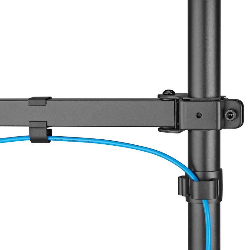 Кронштейн предназначен для крепления двух мониторов 13"-32" дюймов к столу. <br> Совместим с большинством мониторов популярных брендов: Acer, AOC, Asus, BenQ, Dell, Hitachi, HP, Huawei, Hyundai, JVC, Lenovo, LG, Motorola, MSI, NEC, Nokia, Panasonic, Philips, Razer, Samsung, Sharp, Skyworth, Sony, TCL, Telefunken, Terra, Thomson, Toshiba, ViewSonic, Xiaomi.<br> Фиксация кронштейна на столе осуществляется посредством струбцины. <br> Предусмотрена система открытой укладки кабеля вдоль корпуса кронштейна. <br> В комплекте поставляются все необходимые крепления для установки изделия, что обеспечивает удобный и быстрый монтаж.<br> Поддержка крепления стандарта VESA: 75х75/100х100.