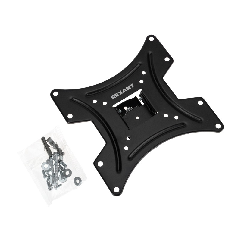 Кронштейн REXANT предназначен для крепления телевизоров 13"- 42" дюймов к стене. Оснащен наклонно-поворотным механизмом, который позволяет свободно регулировать положение телевизора. Такая возможность обеспечивает комфортный и удобный просмотр вне зависимости от Вашего расположения в комнате. В любой момент телевизор можно повернуть в нужную Вам сторону, выставить необходимый угол наклона и избежать бликов при смене освещения. Конструкция механизма позволяет точно и надежно фиксировать заданное положение с максимальной точностью. <br> Кронштейн изготовлен из прочной и износоустойчивой стали, что гарантирует безопасность в процессе использования. <br> Все необходимые крепления для установки изделия поставляются в комплекте, что обеспечивает удобный и быстрый монтаж.<br> Расстояние от стены до кронштейна составляет 60 мм.<br> Поддержка крепления стандарта VESA: 75x75/100x100/200х100/200х200 мм.