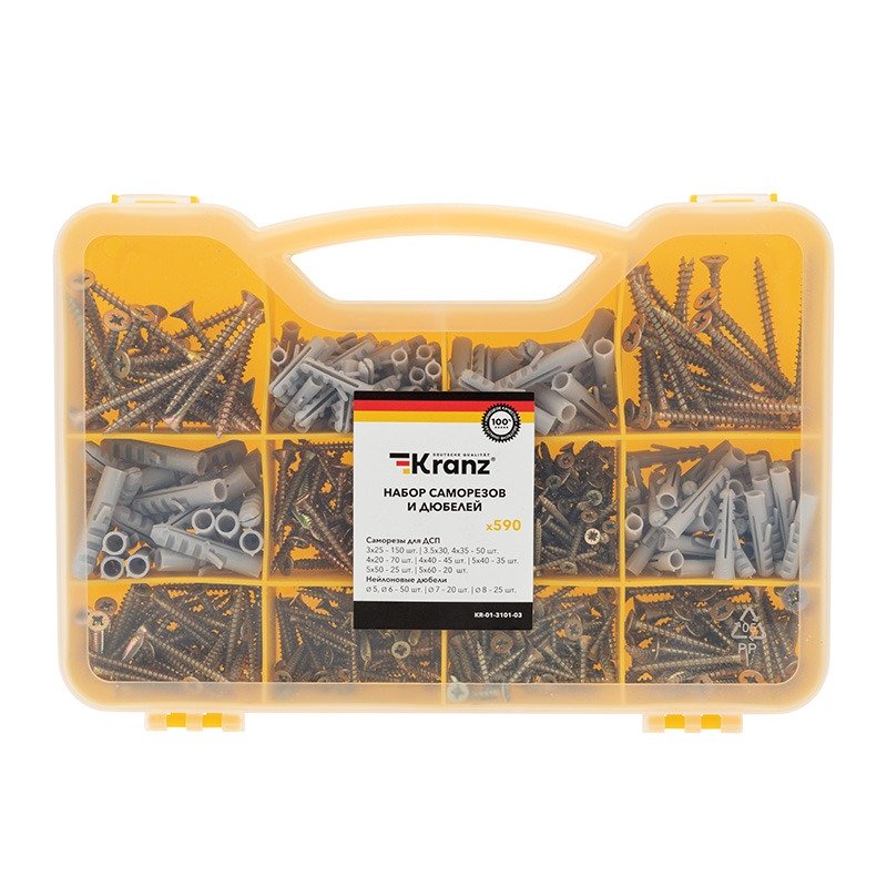 Набор саморезов и дюбелей (590 шт/уп) KRANZ