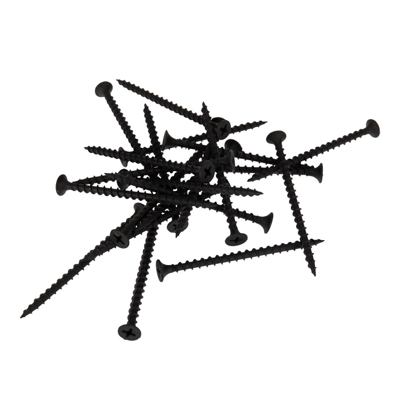 Крупная резьба позволяет надежно закрепить саморез в таких мягких материалах, как древесина, пластик, фанера, ДСП и т. д.