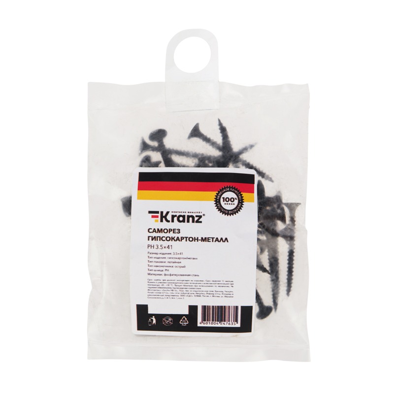 Саморез гипсокартон-металл KRANZ 3.5х41, пакет (50 шт. /уп. )