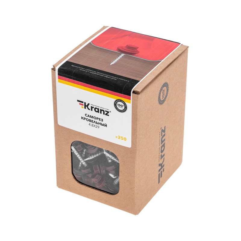 Саморез кровельный 4,8х29, окрашенный RAL 3005, короб (250 шт/уп) KRANZ