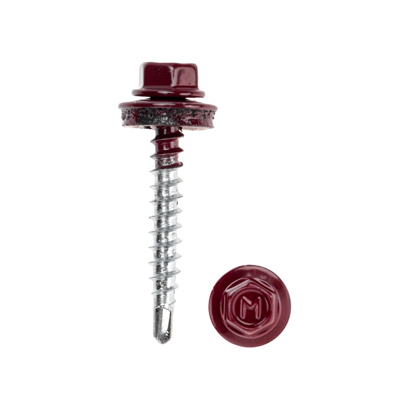 Кровельный саморез предназначен для монтажа кровли к деревянной обрешетке. <br> Изделие обеспечивает плотное присоединение благодаря EPDM-уплотнителю. Саморез изготовлен из стали С1022, благодаря чему отличается прочностью и долговечностью.<br> Цинковое покрытие защищает от коррозии, что особенно важно при эксплуатации на крыше, где материал подвергается воздействию атмосферных факторов. <br> Шестигранная головка покрыта порошковой краской RAL 3005, что позволяет подобрать саморез под цвет крыши.<br> Тип наконечника – сверло, что обеспечивает быстрое и легкое проникновение в материал, упрощая процесс монтажа. <br> Размер самореза – 4,8х35.