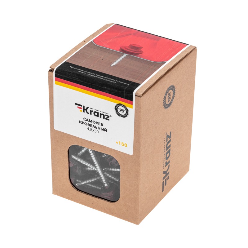 Саморез кровельный 4,8х50, окрашенный RAL 3005, короб (150 шт/уп) KRANZ