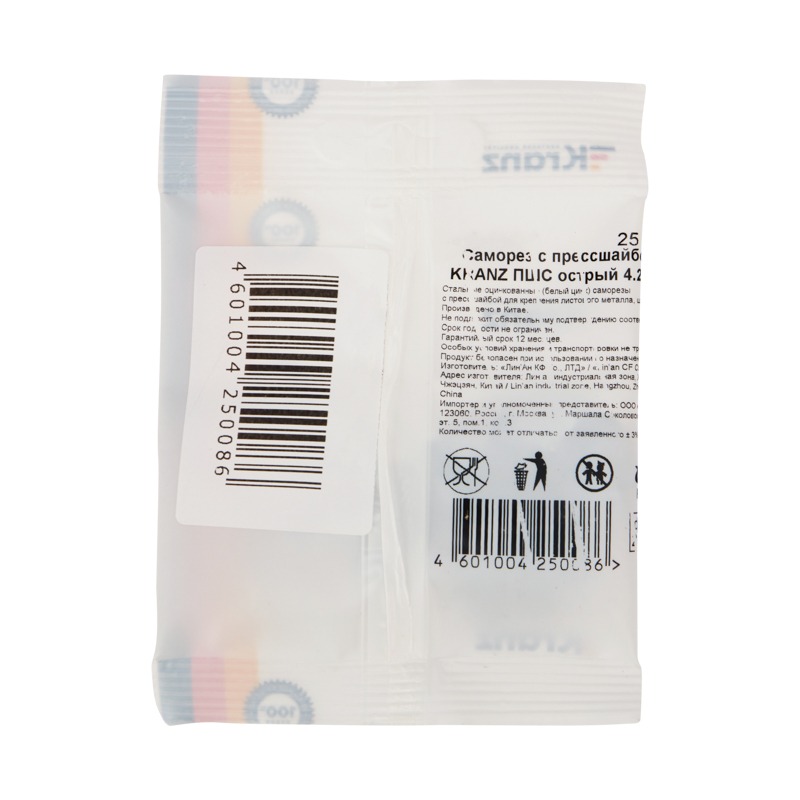 Саморез с прессшайбой KRANZ ПШС острый 4.2х13, пакет (25шт. )