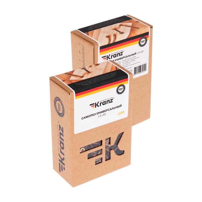 Саморез универсальный KRANZ 3.5х40, желтый цинк, короб (200 шт. /уп. )