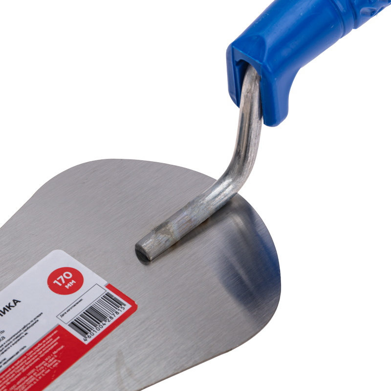Кельма изготовлена из нержавеющей стали что обеспечивает отсутствие коррозии и долгий срок эксплуатации.