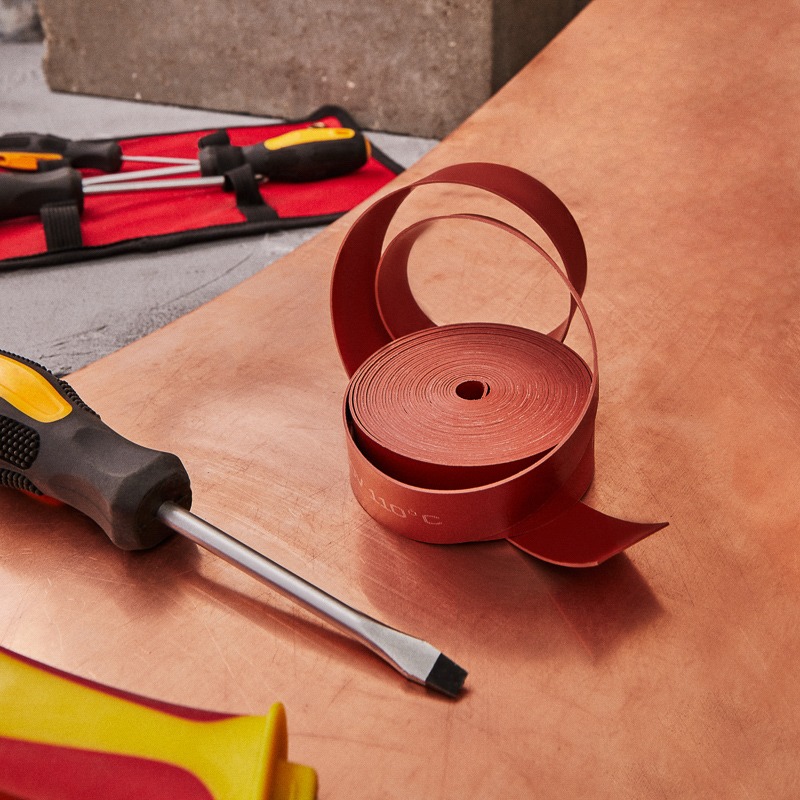 Термоусаживаемая лента с клеевым слоем REXANT 25х0,8 мм, красная, ролик 5 м, ТЛ-0,8