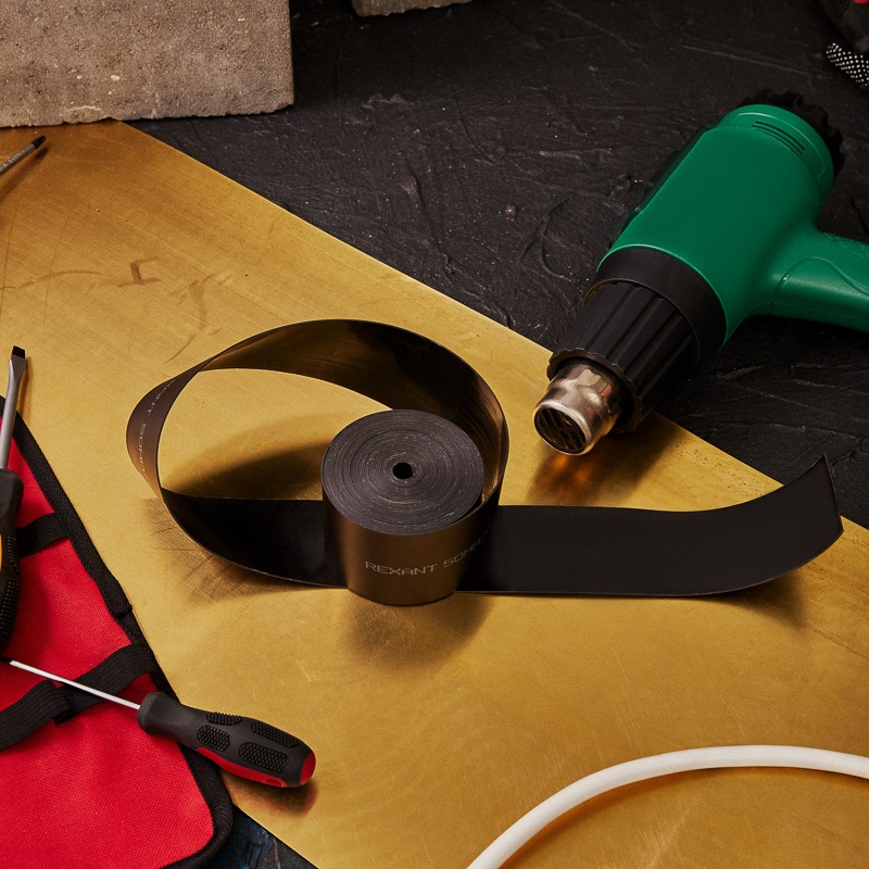 Термоусаживаемая лента с клеевым слоем REXANT 50 мм х 0,8 мм, черная, ролик 5 м, ТЛ-0,8