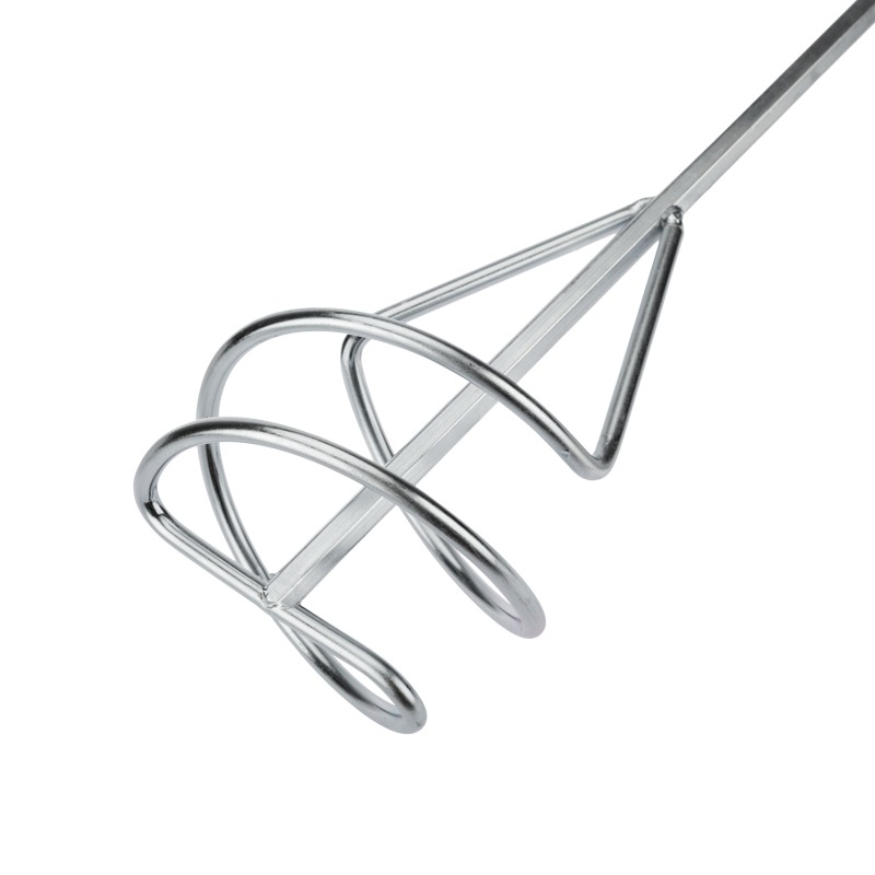 Насадка-миксер (венчик) 100х400 мм шестигранный хвостовик для быстрого и эффективного перемешивания смесей и красок. Применяется совместно с дрелью. Для защиты от коррозии выполнен из оцинкованной стали.