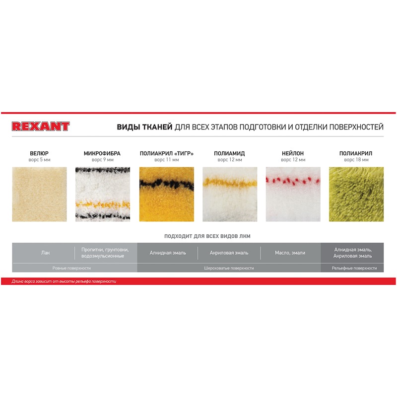 1) Шубка валика – универсальная ткань, которая подходит для всех видов ЛКМ, особенно для акриловых и алкидных эмалей.