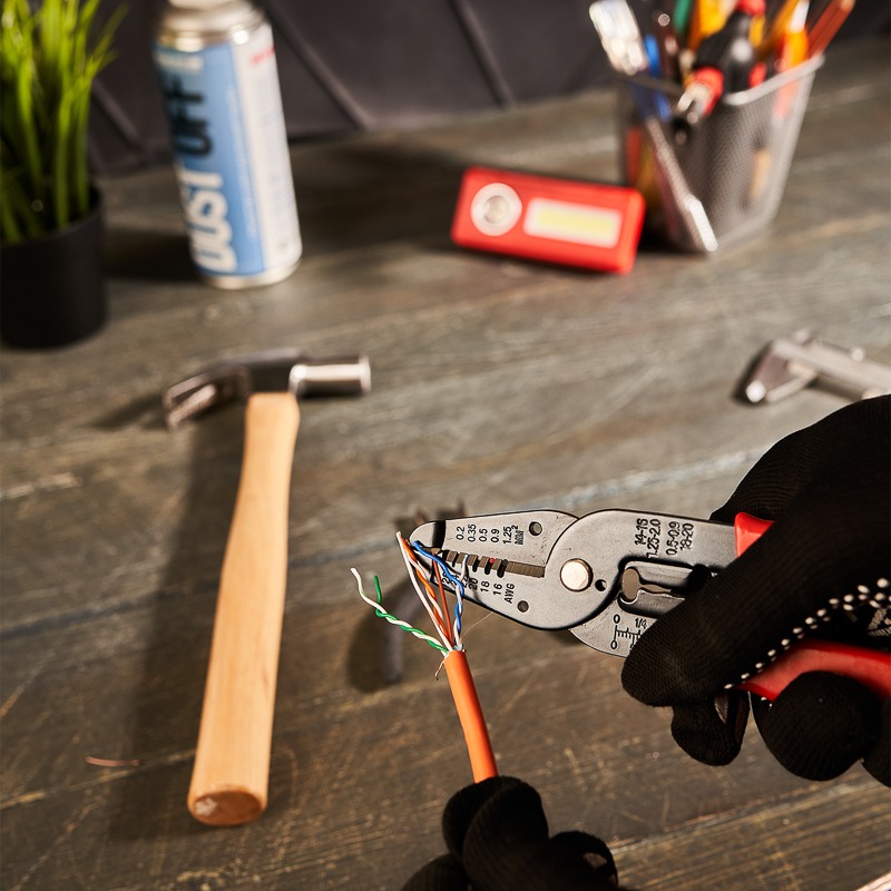 - Специальная конструкция инструмента позволяет зачищать изоляцию без повреждения жилы провода.