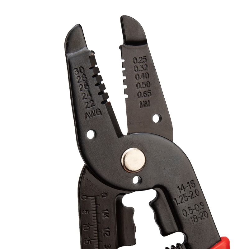 - Корпус выполнен из качественной инструментальной стали с возвратной пружиной для обеспечения обратного хода рукояток и регулятором размера зачистки кабеля.