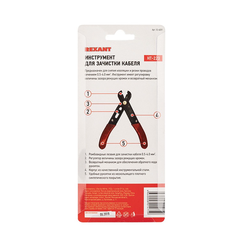Инструмент для зачистки кабеля REXANT HT-223 0.5-4.0 мм²