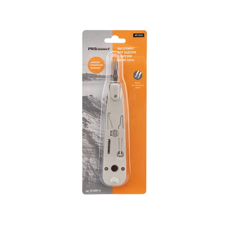 Инструмент PROconnect HT-3141 предназначен для заделки и обрезки проводников во врезные контакты на кроссах, патч-панелях, розетках и модулях, заделки контактов 110 типа и типа KRONE.