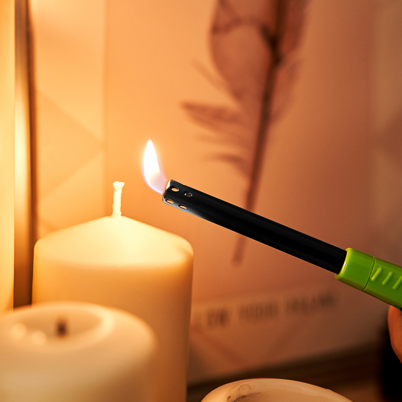 Бытовая пьезозажигалка с классическим пламенем, c держателем.