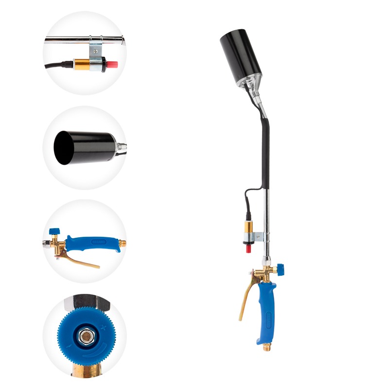 Подключается к баллону с газом пропаном с помощью газового шланга. Система пьезоподжига позволяет обходиться без использования спичек при розжиге пламени. Горелка обладает мобильностью, высокой силой подаваемого газа и элементами его регулирования. Сопло выполнено из латуни для повышения срока службы инструмента. С помощью вентиля легко регулировать длину пламени. Рычаг дежурного огня позволяет временно приостанавливать работы без повторного поджига газа.