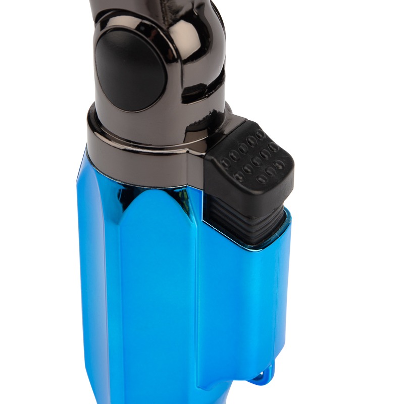 Главное отличие от аналоговых моделей – регулировка угла наклона сопла. Предусмотрена емкость в рукоятке-подставке для заправки газом-бутаном. Регулируемое турбо-пламя всегда остается стабильным даже при ветре и дожде. Подача топлива управляется откидным регулятором в нижней части горелки.