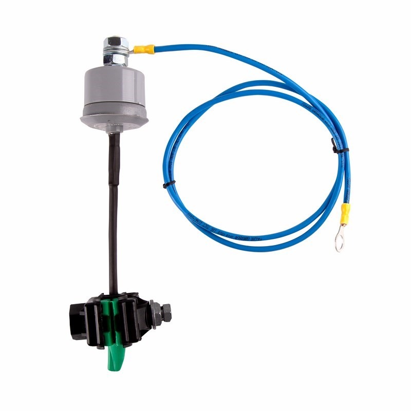 Служит для ограничения коммутационных и грозовых перенапряжений в системах СИП до 1 кВ. Для однофазной ВЛ применяется один ограничитель, для трехфазной ВЛ — три ограничителя. Ограничитель перенапряжения — варисторного типа. Поставляется в сборе с прокалывающим зажимом.