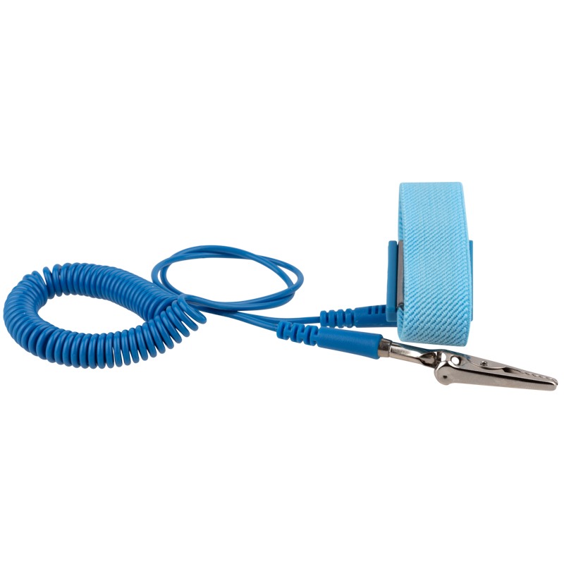 Антистатический браслет REXANT применяют при работе с электрическими приборами, платами и электронными компонентами. <br> При использовании антистатического браслета электрический заряд не скапливается на теле и одежде человека, а притягивается токопроводящими волокнами и по шнуру отводится от рабочего места на резистор с шиной заземления. <br> Браслет изготавливается из качественных материалов и очень удобен в использовании. <br> Состоит из самого браслета и витого провода с зажимом для крепления к токопроводящей поверхности.<br> <br> Антистатический браслет. Цвет – голубой<br> Эластичная тесемка с зажимом<br> Размеры браслета: 1,9 х 1,9 см.<br> Пружинный провод: 2 м. (полиуретан и поливинилхлорид)<br> Сопротивление браслета: 105-109 Ом<br> <br> Порядок работы<br> 1. Наденьте браслет и туго затяните.<br> 2. Подсоедините браслет к проводу заземления с помощью замкового соединения. Статику можно заземлить с помощью индукционного кабеля.<br> <br> Примечания<br> 1. Чтобы отсоединить заземляющий провод, возьмитесь за зажим. Если потянуть за провод, он может сломаться.<br> 2. В целях предотвращения поражения электрическим током в зажим заземляющего провода встроен резистор. Ни в коем случае не отказывайтесь от его использования.<br> 3. Регулярно проверяйте заземляющий провод на предмет целостности.<br> 4. Для стирки браслета используйте нейтральный детергент.<br> 5. Немедленно прекратите использование браслета в случае появления зуда, высыпаний или других симптомов.