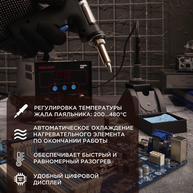 Паяльная станция (паяльник + демонт. паяльник), модель R048, цифровая, 200-480°C, LED дисплей REXANT