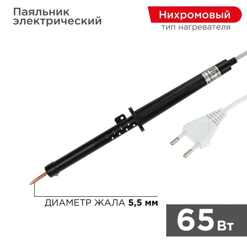 Паяльник с пластиковой ручкой, серия ЭПСН, 65Вт, 230В, пакет REXANT