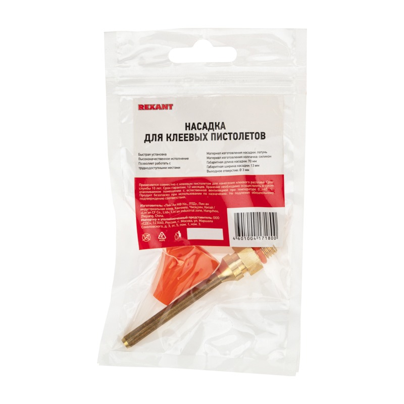 Насадка для клеевых пистолетов, удлиненная, 70мм, силиконовая защита REXANT