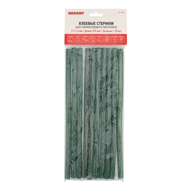 Стержни клеевые Ø11мм, 270мм, зеленые (10 шт/уп), хедер REXANT