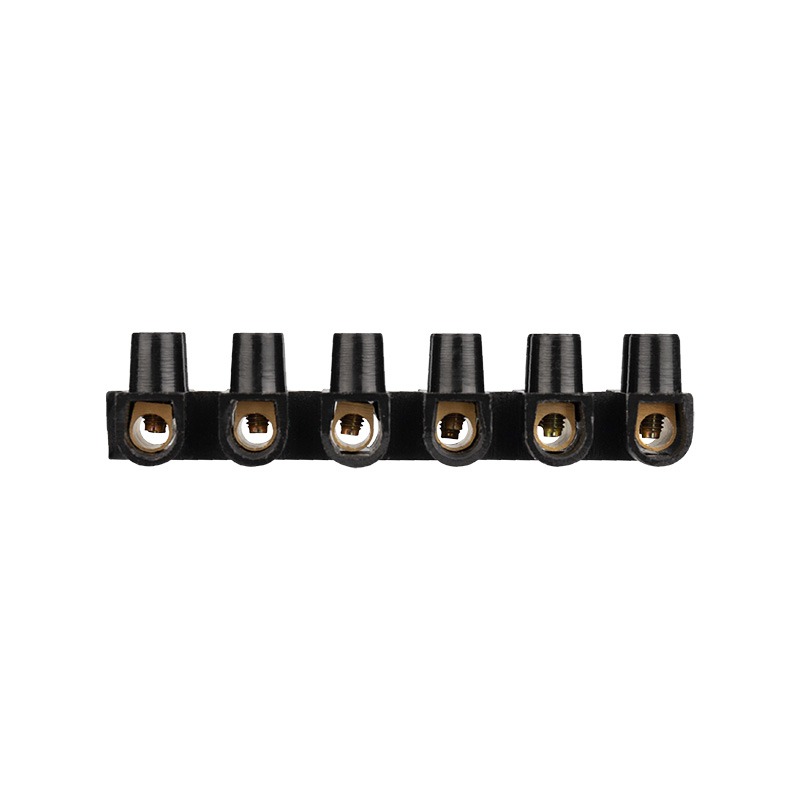 Колодка клеммная КВ-10 10 А, 10 мм² PP (полипропилен), черная REXANT предназначена для создания изолированного проходного соединения многожильных и одножильных кабелей и проводов. Использование клеммной колодки при проведении электромонтажных работ значительно сэкономит время монтажа и обеспечит безопасное и надежное соединение проводников между собой. <br> <br> Основные характеристики:<br> Материал корпуса: полипропилен<br> Сечение соединяемых жил: от 4 до 10 мм²<br> Максимальная сила тока: 10 Ампер<br> Рабочая температура: –10...+95 ℃<br> Цвет корпуса колодки: черный