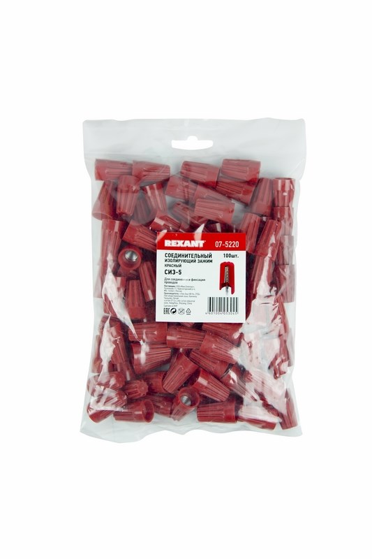 Соединительный изолирующий зажим СИЗ-5, ø 5,4 мм (3,0-17,0 мм²) красный REXANT